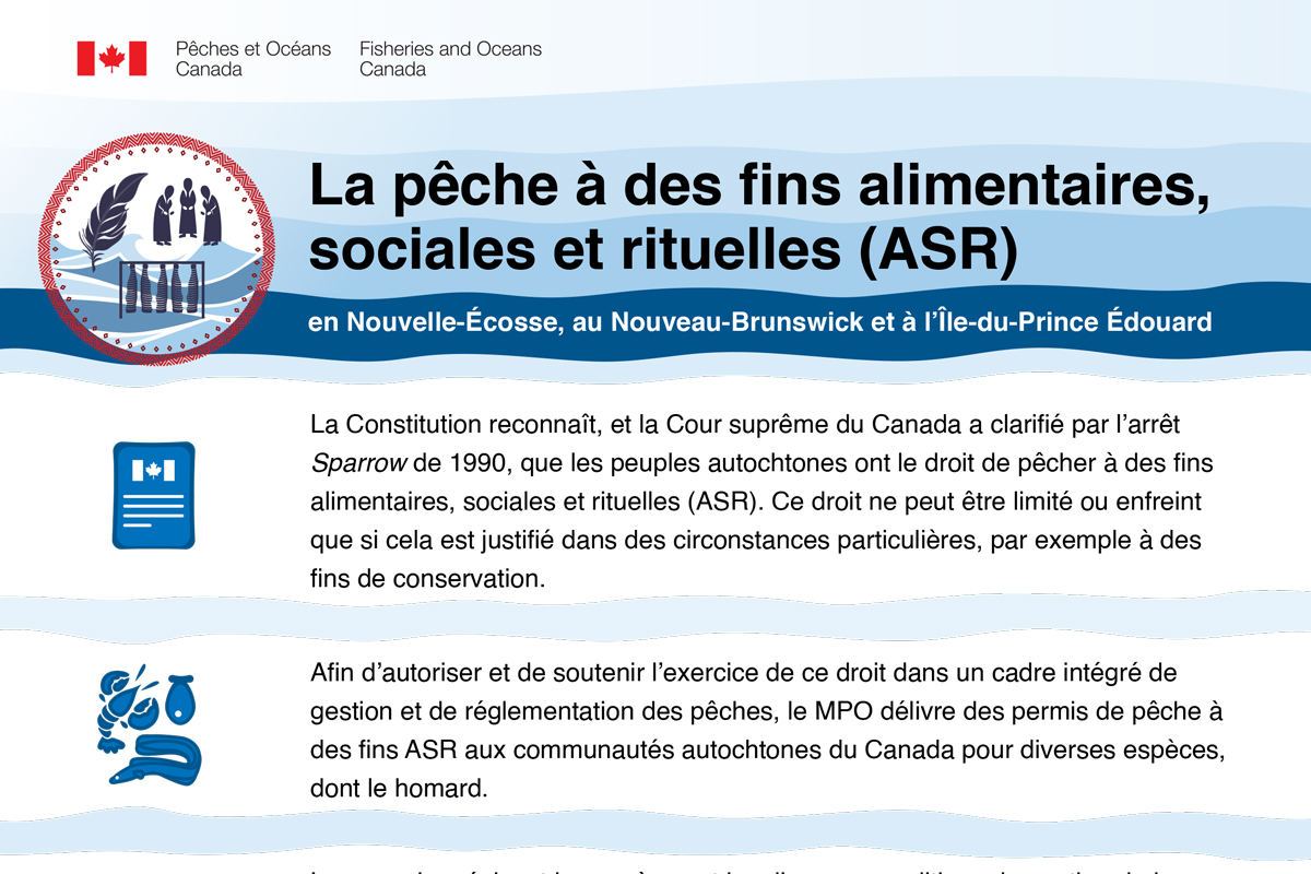 Infographie – La pêche à des fins alimentaires, sociales et rituelles (ASR) en Nouvelle-Écosse, au Nouveau-Brunswick et à l’Île-du-Prince-Édouard
